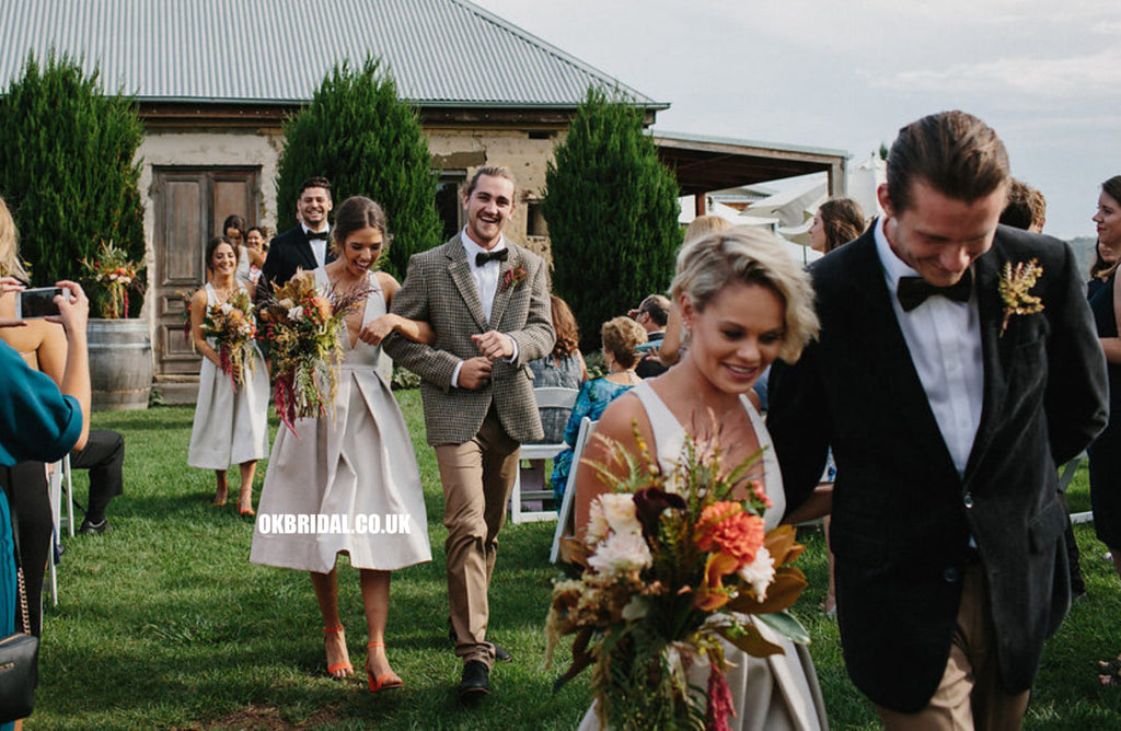 Simple Tea-Length A-Line Deep V-neck Bridesmaid Dresses, FC2006