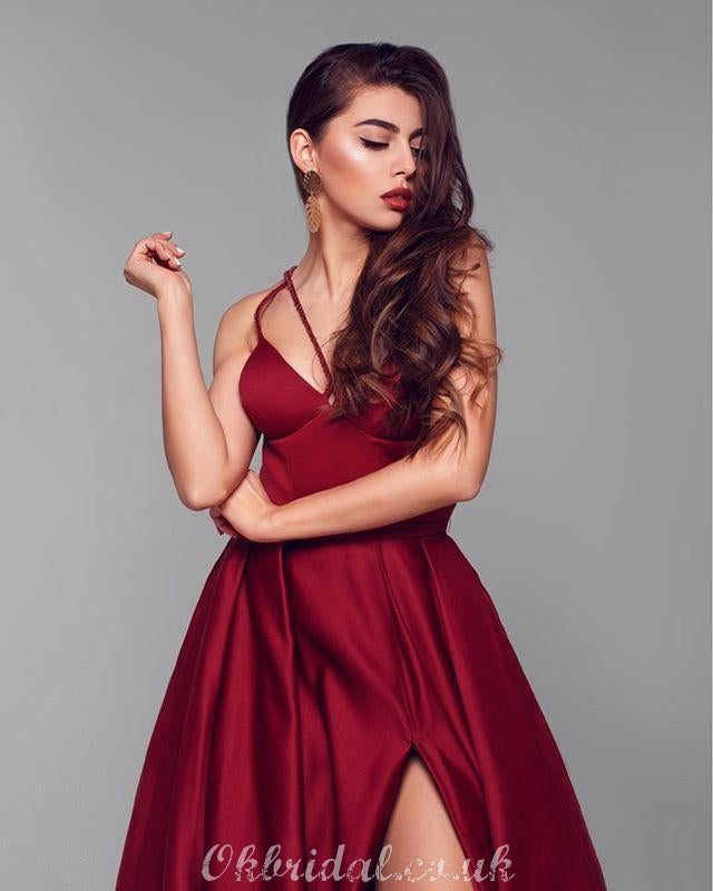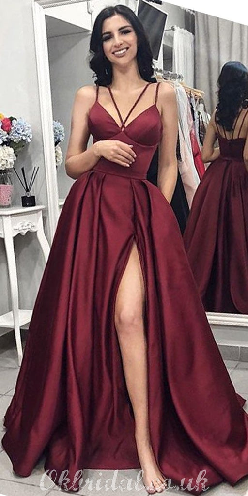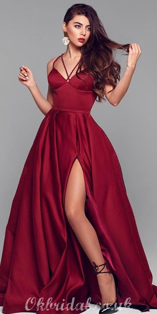 Elegant A-line Satin Backless Sexy Slit Long Prom Dress, FC2541