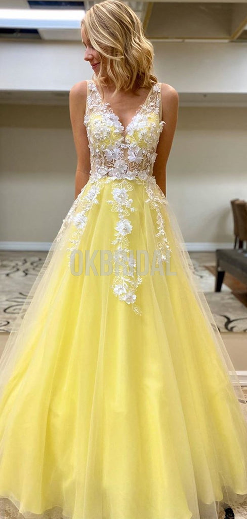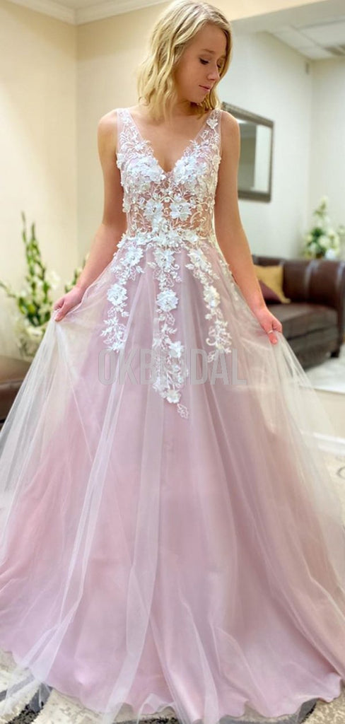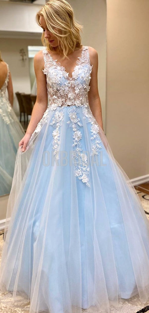 Gorgeous Different Color A-line Tulle Sleeveless V-neck Long Lace Prom Dress, FC4531