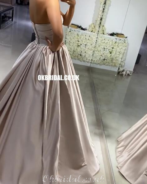 Simple A-line Satin Sweetheart Backless Prom Dresses, FC4234