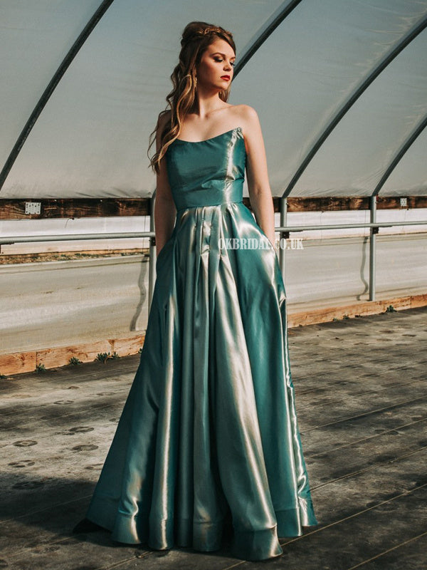 Simple Designed A-line Satin Backless Long Prom Dresses, FC5403