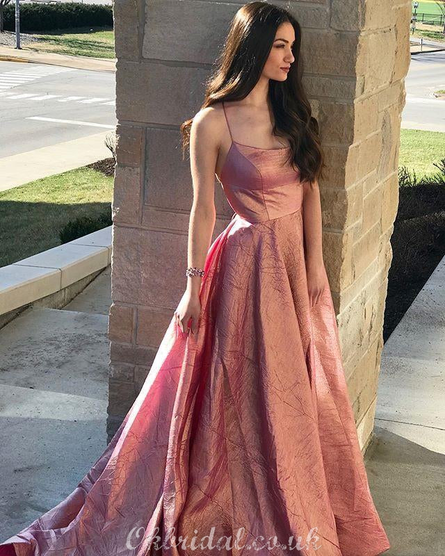 Spaghetti Straps A-line Taffeta Backless Prom Dress, FC774