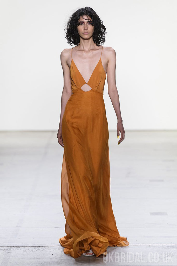 Spaghetti Straps Deep V-Neck Backless A-Line Organza Prom Dresses, FC2155