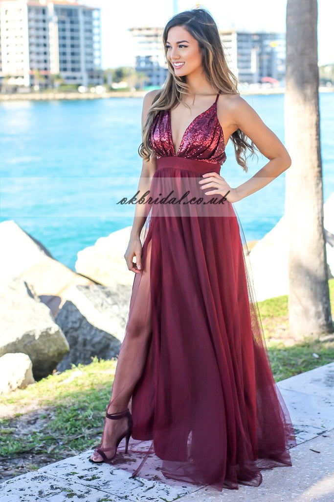 Spaghetti Straps Tulle Prom Dress, Sequin Top Prom Dress, Slit Backless Prom Dress, KX334 Spaghetti Straps Tulle Prom Dress, Sequin Top Prom Dress, Slit Backless Prom Dress, KX334