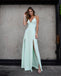 Simple A-line Slit Mint Green Jersey V-neck Backless Prom Dresses, FC1565 Simple A-line Slit Mint Green Jersey V-neck Backless Prom Dresses, FC1565