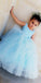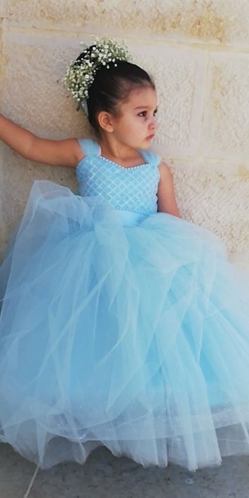 Blue Tulle A-Line Sleeveless Flower Girl Dresses, Popular Lace Little