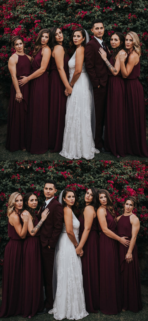 Affordable Chiffon Simple A-Line Sleeveless Long Bridesmaid Dresses, F
