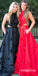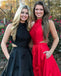 Black and Red A-Line Satin Sleeveless Applique Long Prom Dress, FC609