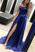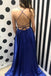 Royal Blue A-Line Sexy Slit Backless Long Elastic Satin Prom Dresses, FC215