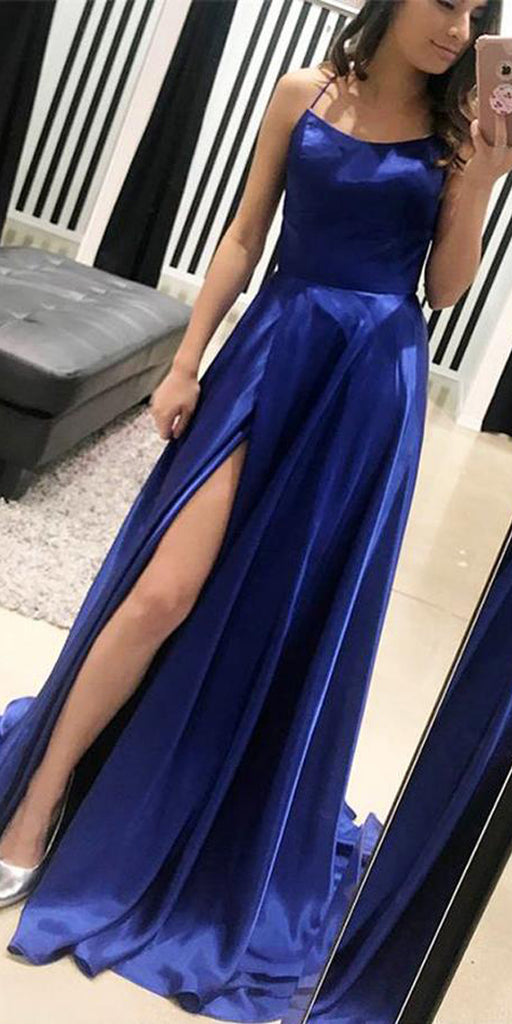 Royal Blue A-Line Sexy Slit Backless Long Elastic Satin Prom Dresses, FC215 Royal Blue A-Line Sexy Slit Backless Long Elastic Satin Prom Dresses, FC215