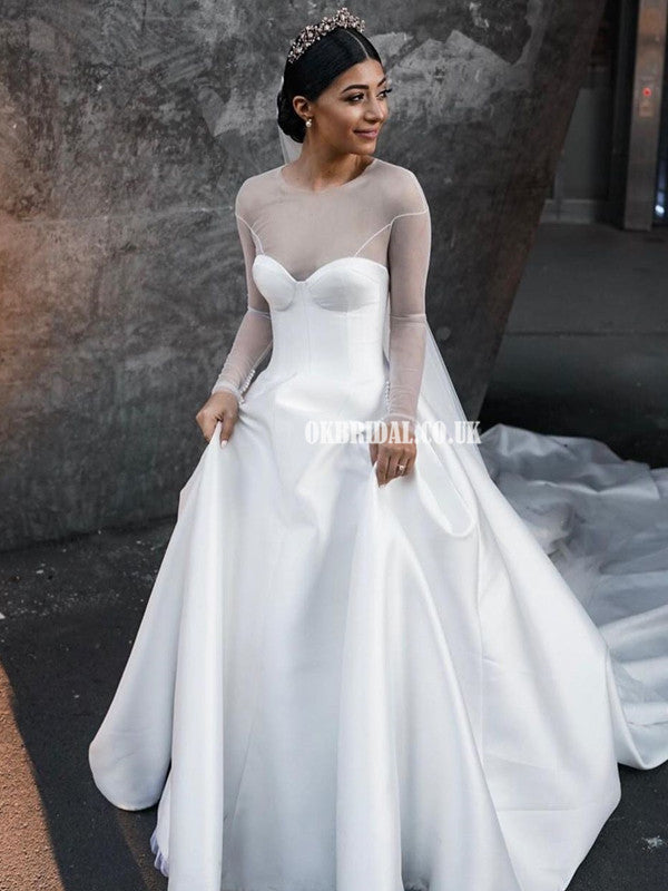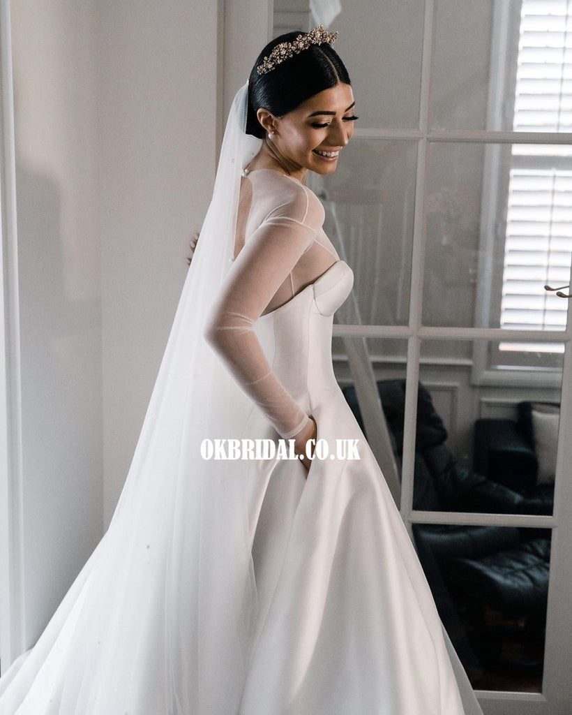 Stunning Satin A-line Long Sleeves Wedding Dresses, FC5030 Stunning Satin A-line Long Sleeves Wedding Dresses, FC5030