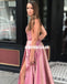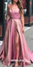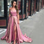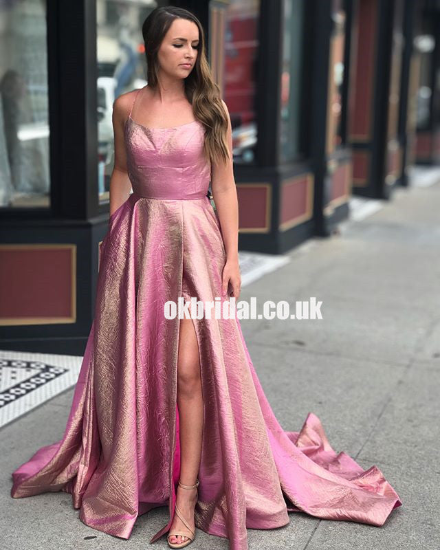 Unique Taffeta Sapghetti Straps Backless Slit A-Line Prom Dresses, KX1290