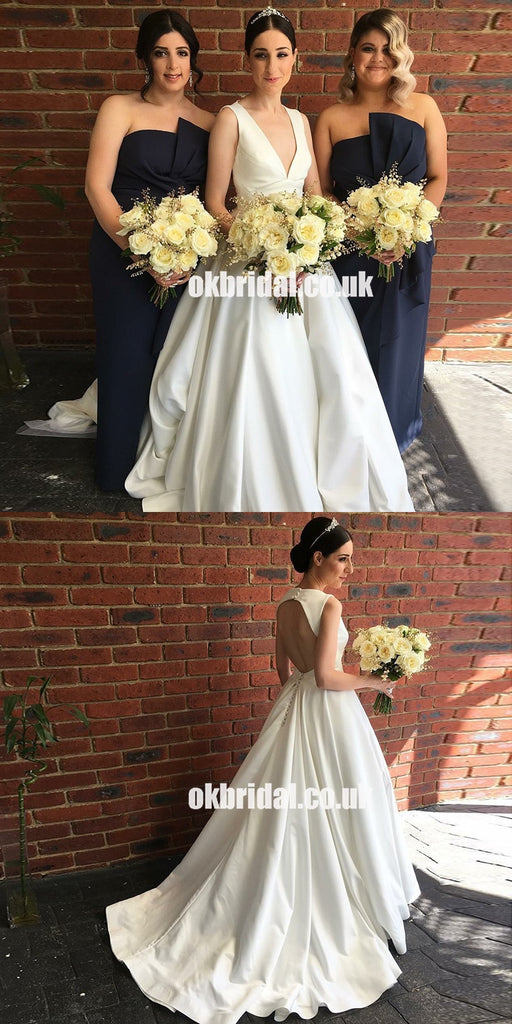 Charming V-Neck Satin Wedding Dress, A-Line White Open-Back Sleeveless Wedding Dress, LB0952