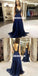 Online Charming Beaded A-Line Sleeveless Chiffon Long Navy Prom Dresses, KX1258