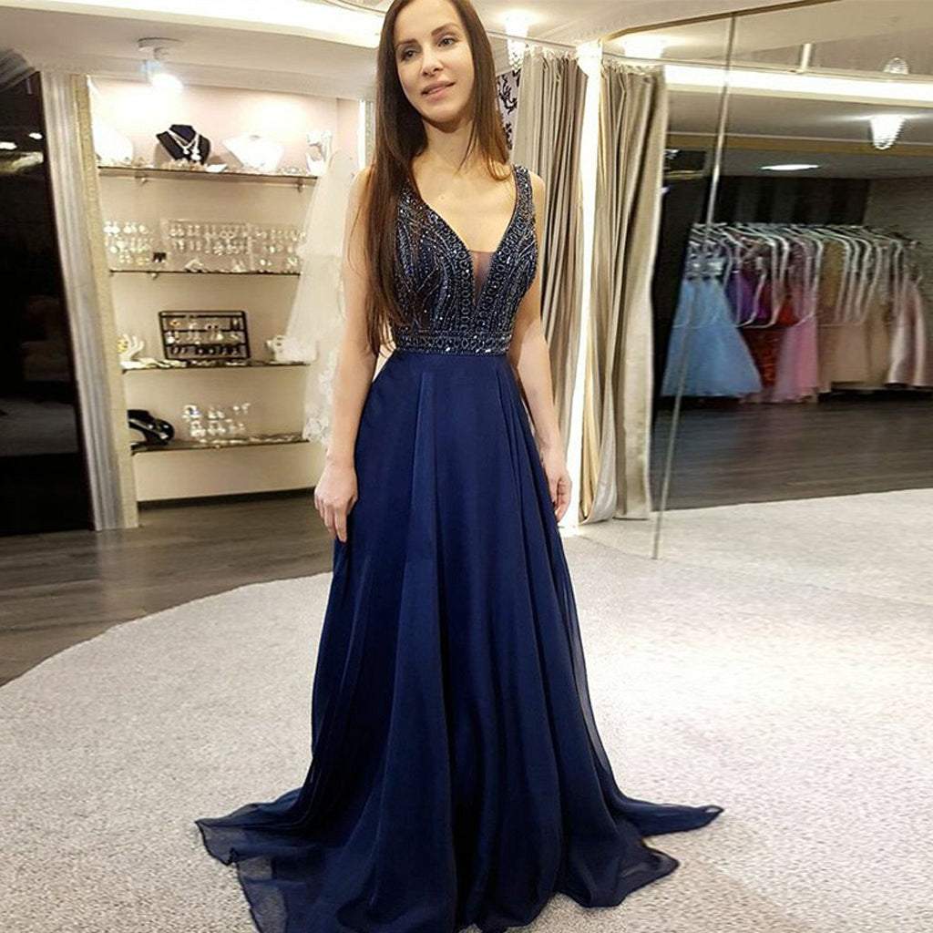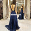 Online Charming Beaded A-Line Sleeveless Chiffon Long Navy Backless Prom Dresses, KX1258 Online Charming Beaded A-Line Sleeveless Chiffon Long Navy Backless Prom Dresses, KX1258