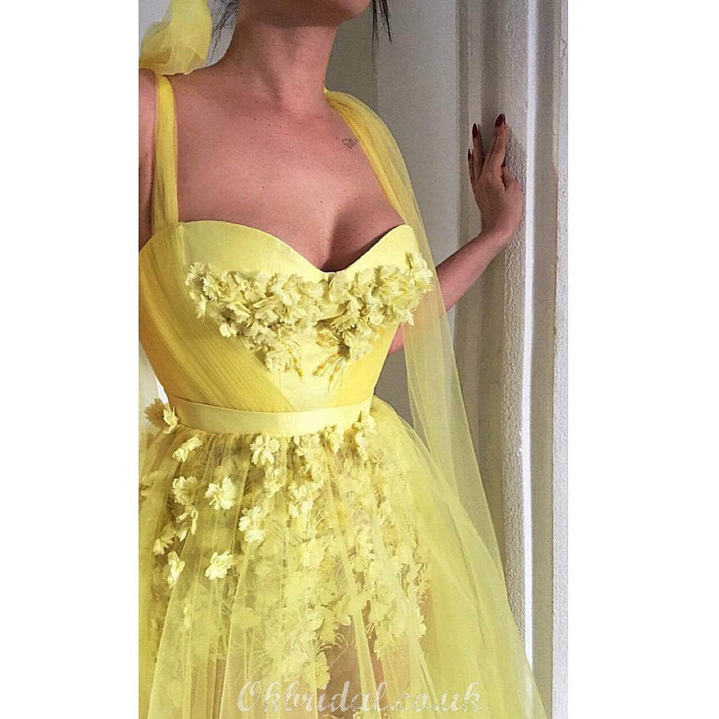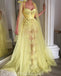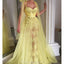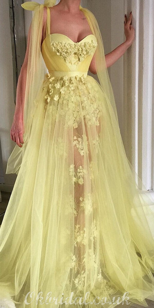 Yellow A-line Tulle Sweetheart Lace Applique Prom Dress, FC4155