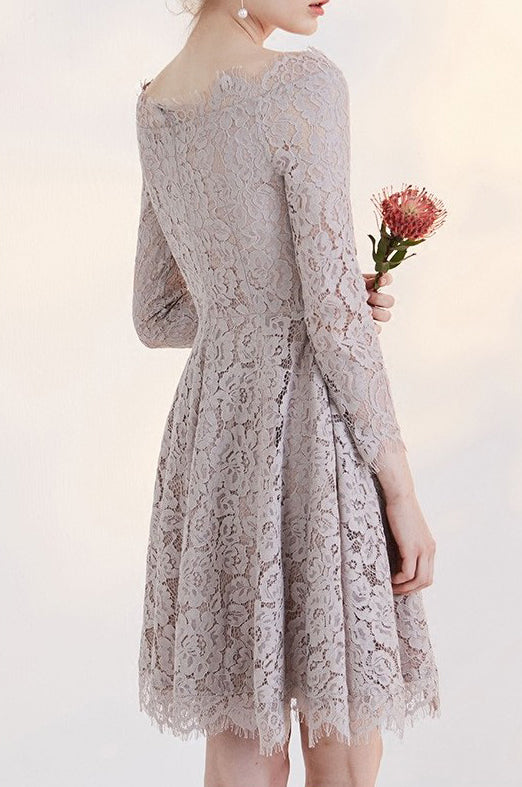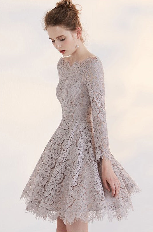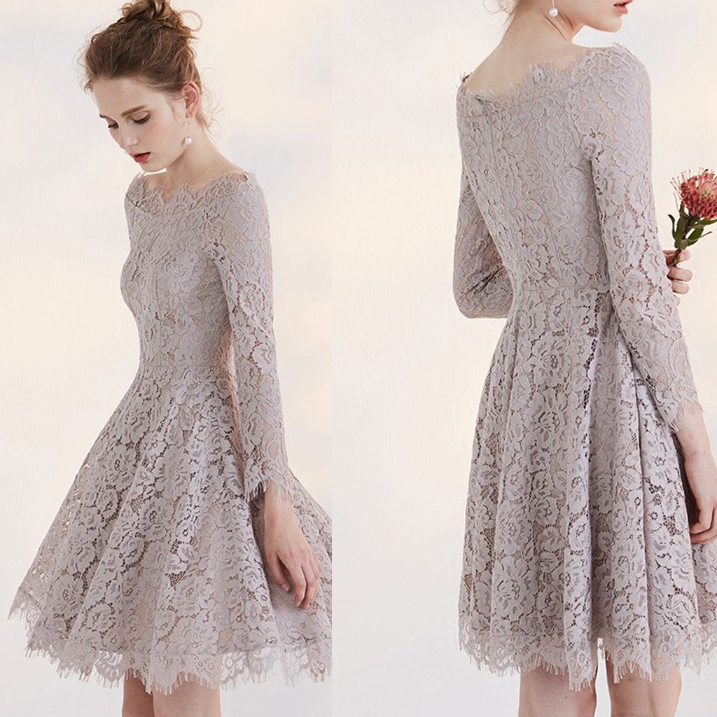 Off Shoulder Long Sleeve Lace Junior School Dress, Knee-Length Homecom