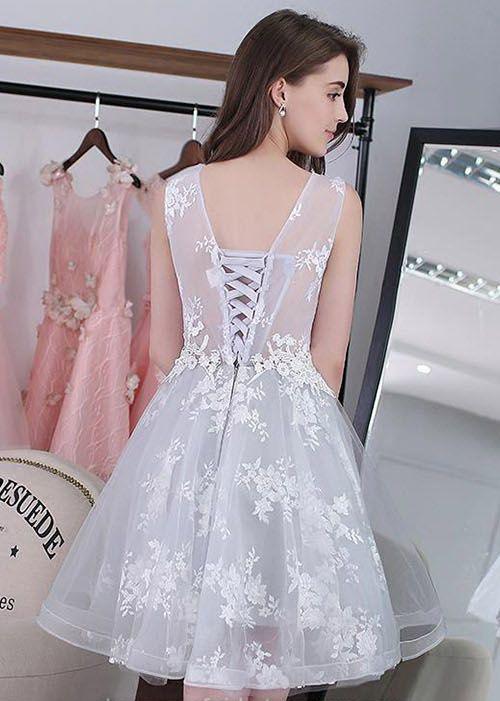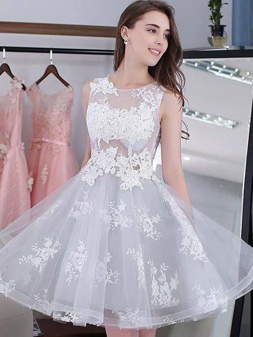 Short Homecoming Dress, Tulle Homecoming Dress, Sleeveless Homecoming Dress, Applique Junior School Dress, See Through Homecoming Dress, Knee-Length Homecoming Dress, LB0743