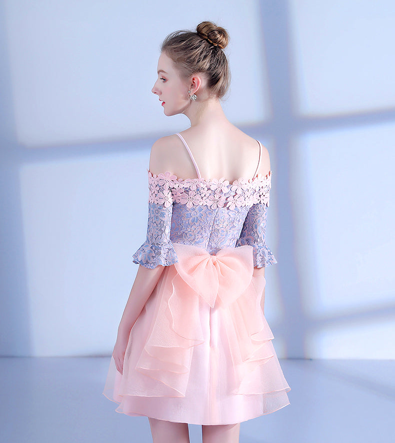 Short Homecoming Dress, Tulle Homecoming Dress, Two Straps Homecoming Dress, Applique Junior School Dress, Lace Homecoming Dress, Cute Homecoming Dress, LB0365