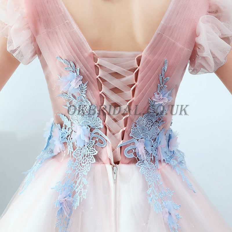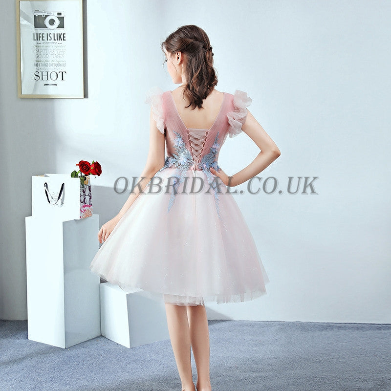Tulle Homecoming Dress, V-Neck Homecoming Dress, Knee-Length Junior School Dress, Applique Homecoming Dress, KX13