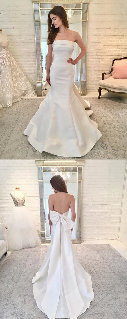 Straight Neckline Satin Backless Mermaid Wedding Dress with Bow-Knot, FC1584 Straight Neckline Satin Backless Mermaid Wedding Dress with Bow-Knot, FC1584