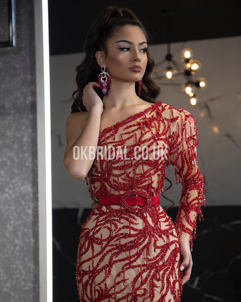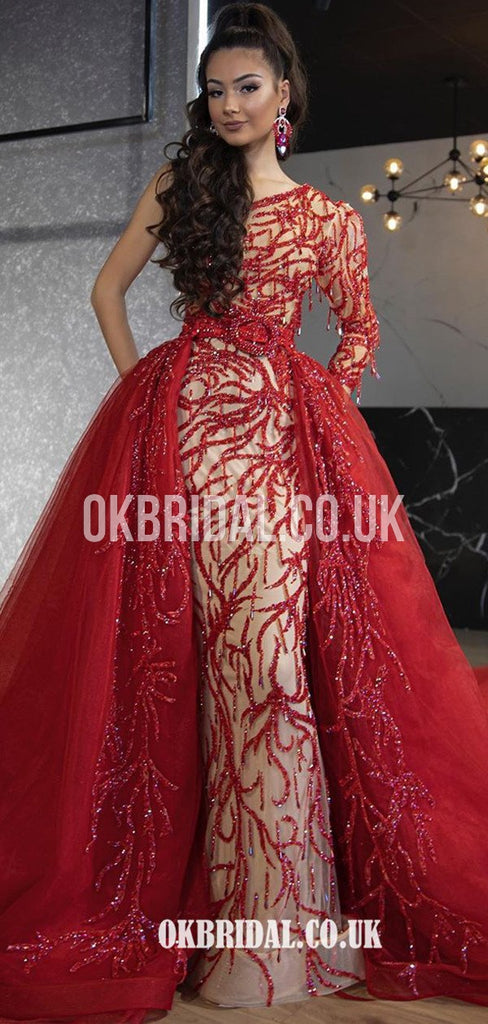 Gorgeous Mermaid Tulle One Shoulder Sequin Applique Prom Dress with Detachable Skirt, FC4453
