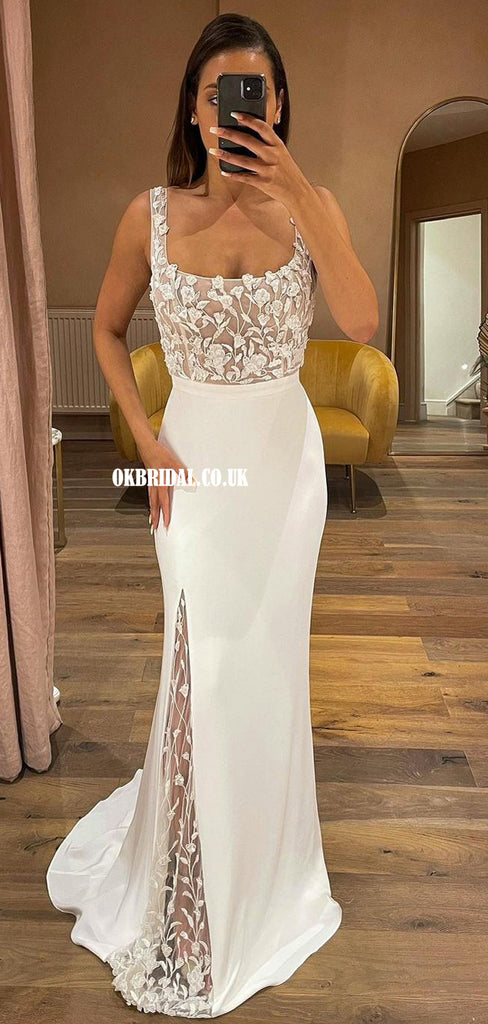 Gorgeous Scoop Neck Mermaid Lace Backless Sexy Wedding Dresses, FC6035