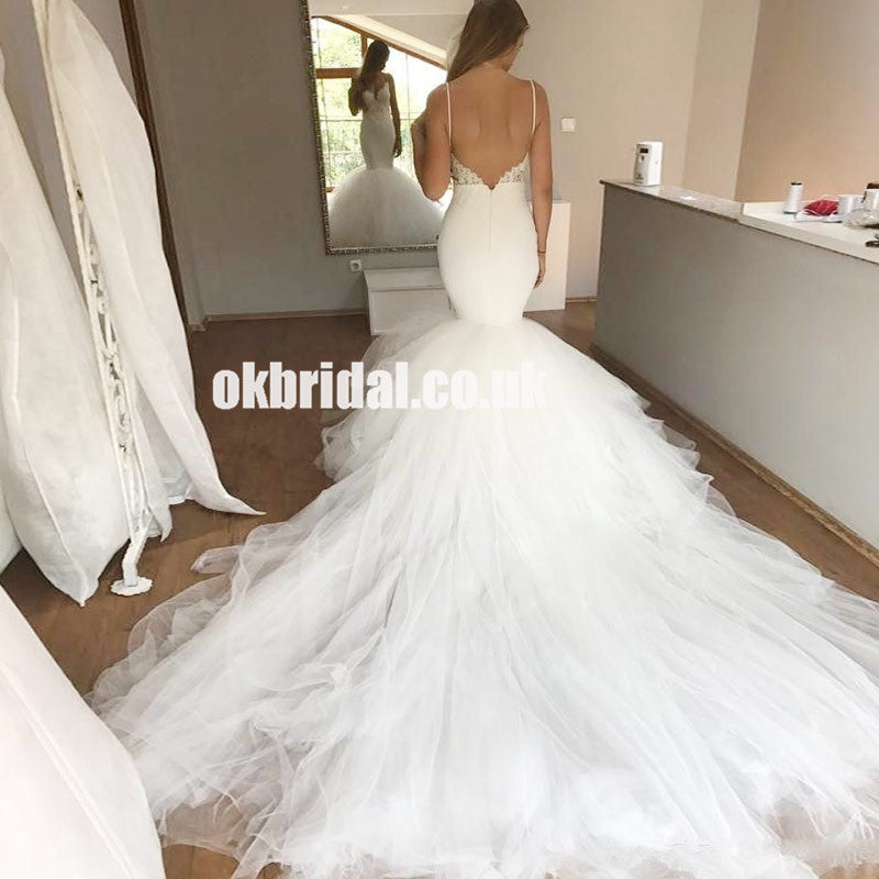 Sexy Mermaid Lace Top Backless Tulle Spaghetti Strpas Wedding Dress, LB0809