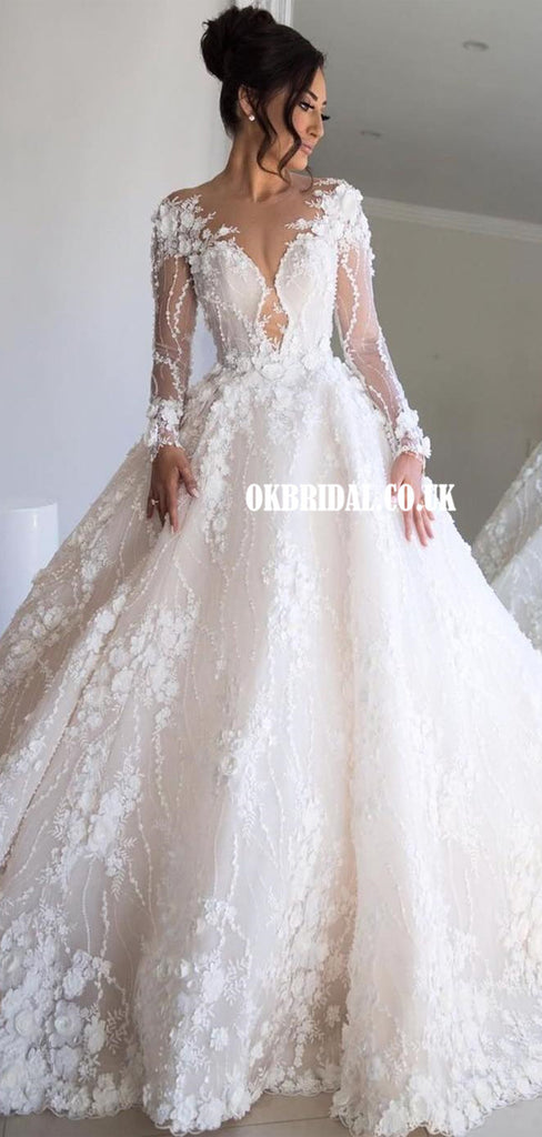 Luxury A-line Lace Long Sleeves Wedding Dresses, FC4568