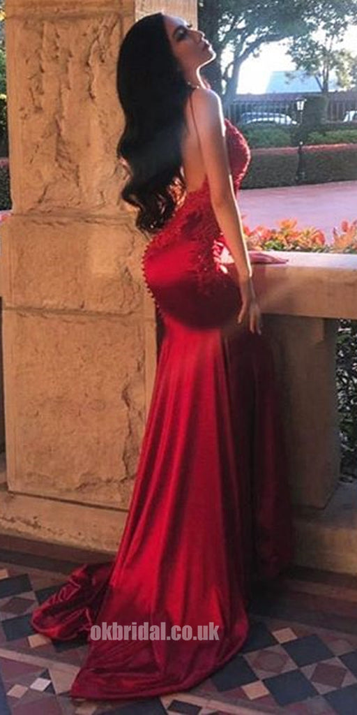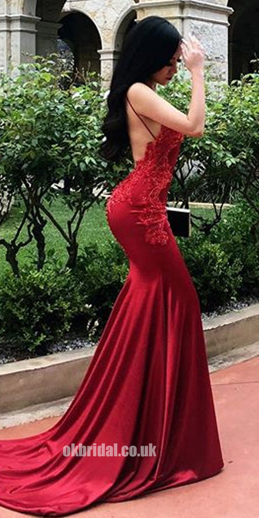 Sexy Mermaid Backless Straps Applique Red Prom Dress, FC1919