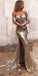 Sparkly Sequin Off Shoulder Sexy Slit Backless Mermaid Prom Dresses, F