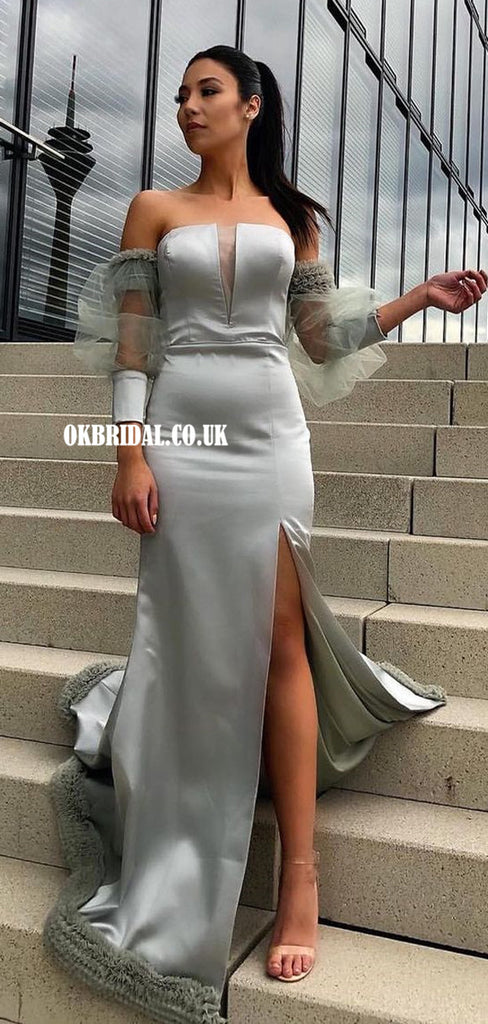 Stunning Mermaid Sexy Side Slit Long Sleeves Prom Dresses, FC4767