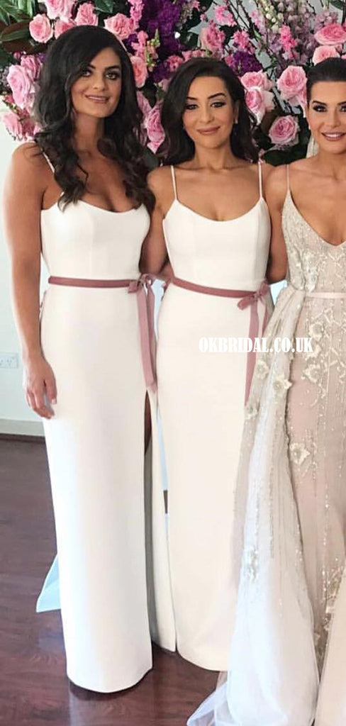 Stunning Mermaid Spaghetti Straps Slit Ivory Bridesmaid Dress, FC5963