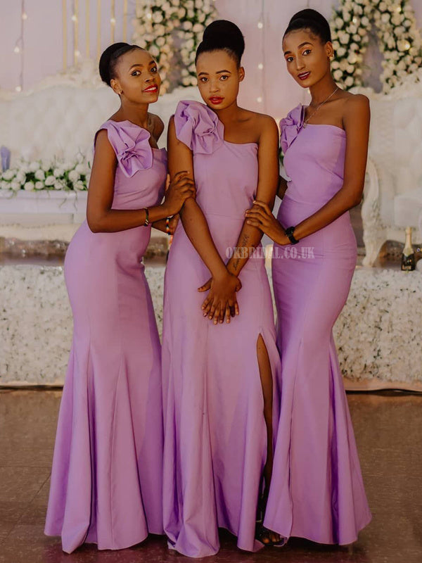 Glamorous One-shoulder Mermaid Soft Satin Slit Bridesmaid Dress, FC609