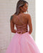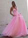 Pink Sparkle Spaghetti Straps A-line Backless Prom Dresses, FC6491 Pink Sparkle Spaghetti Straps A-line Backless Prom Dresses, FC6491