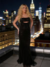 Spaghetti Straps Black Mermaid Sequin Backless Prom Dresses, OB108