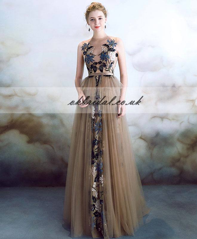 Charming Applique Prom Dress, Tulle Sleeveless Floor-Length Prom Dress, KX274