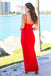 New Arrival Red Backless Sheath Prom Dresses, Spaghetti Straps Deep V-